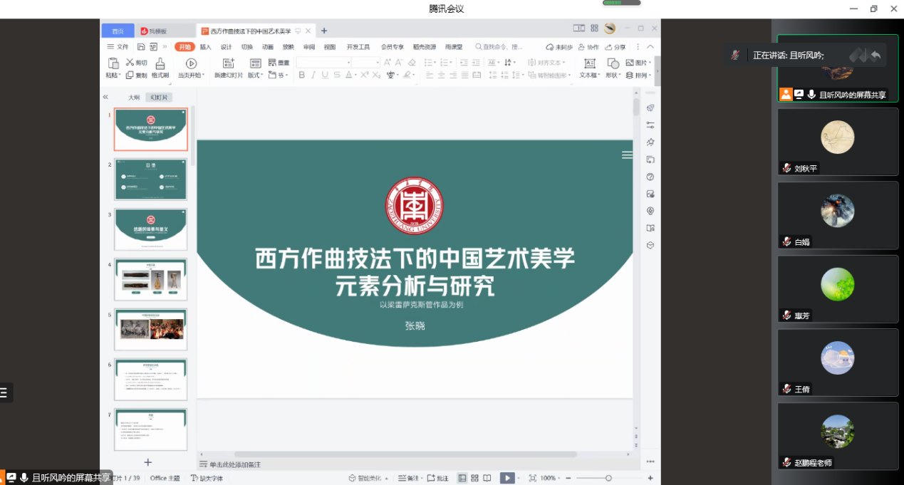 2022年11月23日,pg游戏电子模拟器青年学者学术论坛第四场《西方作曲技法下的中国艺术美学元素分析与研究》通过线上腾讯会议展开。此次讲座由pg游戏电子模拟器张晓博士主讲,全体教师和部分学生代表参加。