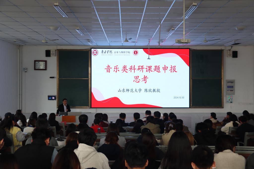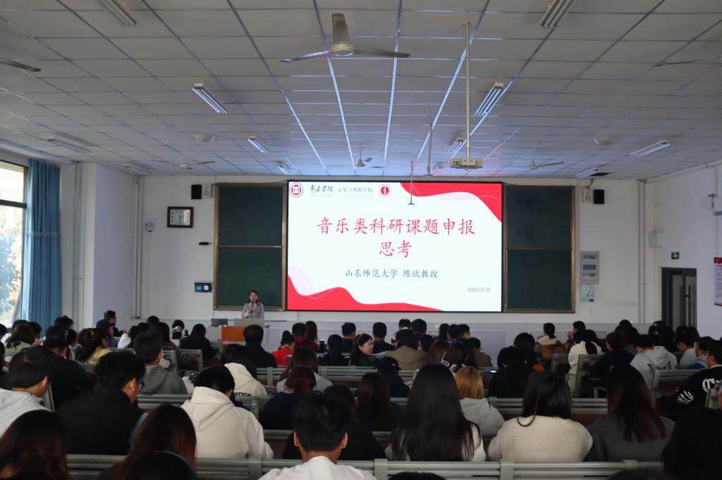 10月30日下午,山东师范大学博士生导师陈欣教授应邀来pg游戏电子模拟器作学术报告。报告在薛城校区增信楼112报告厅举行。pg游戏电子模拟器全体专任教师及音乐学专业学生参加,报告会由吴蕾院长主持。