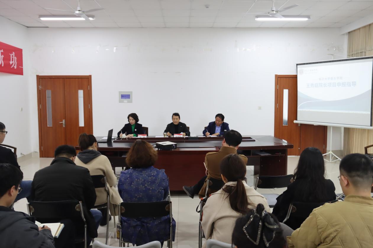 李永书记作总结讲话,他指出,王院长的学术成就和治学精神,是我们全体师生学习的榜样和追求的目标。王秀庭院长百忙之中抽出宝贵时间,来到学院进行课题申报的指导,这既是对学院科研工作的关心和支持,也是对学院教师科研能力提升的期望和鞭策。项目课题申报是科研工作的重要环节,是提升学院科研水平、推动学科发展的关键所在。希望全体教师认真领会,着力提升自身科研能力。