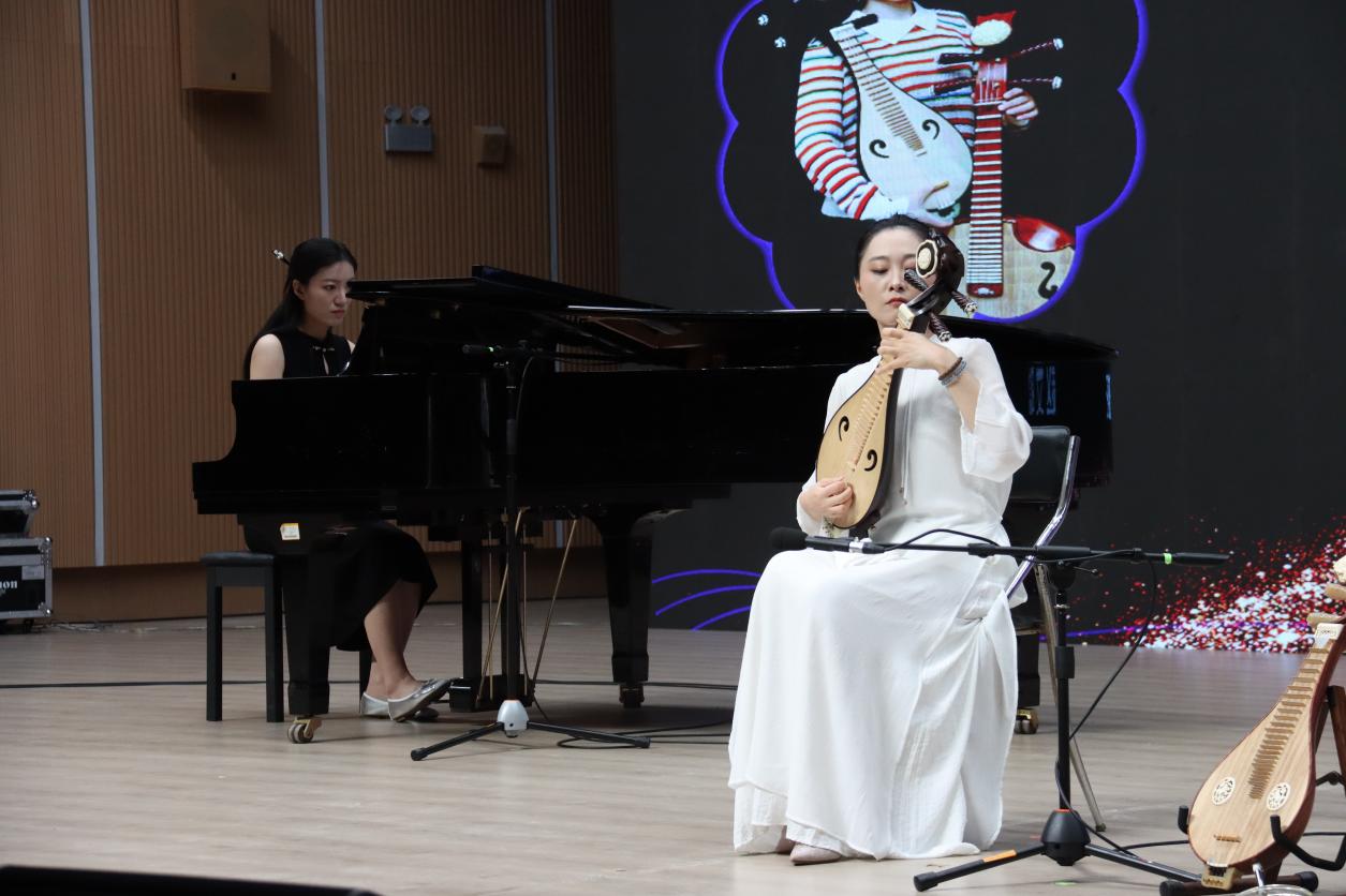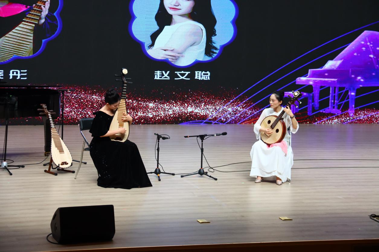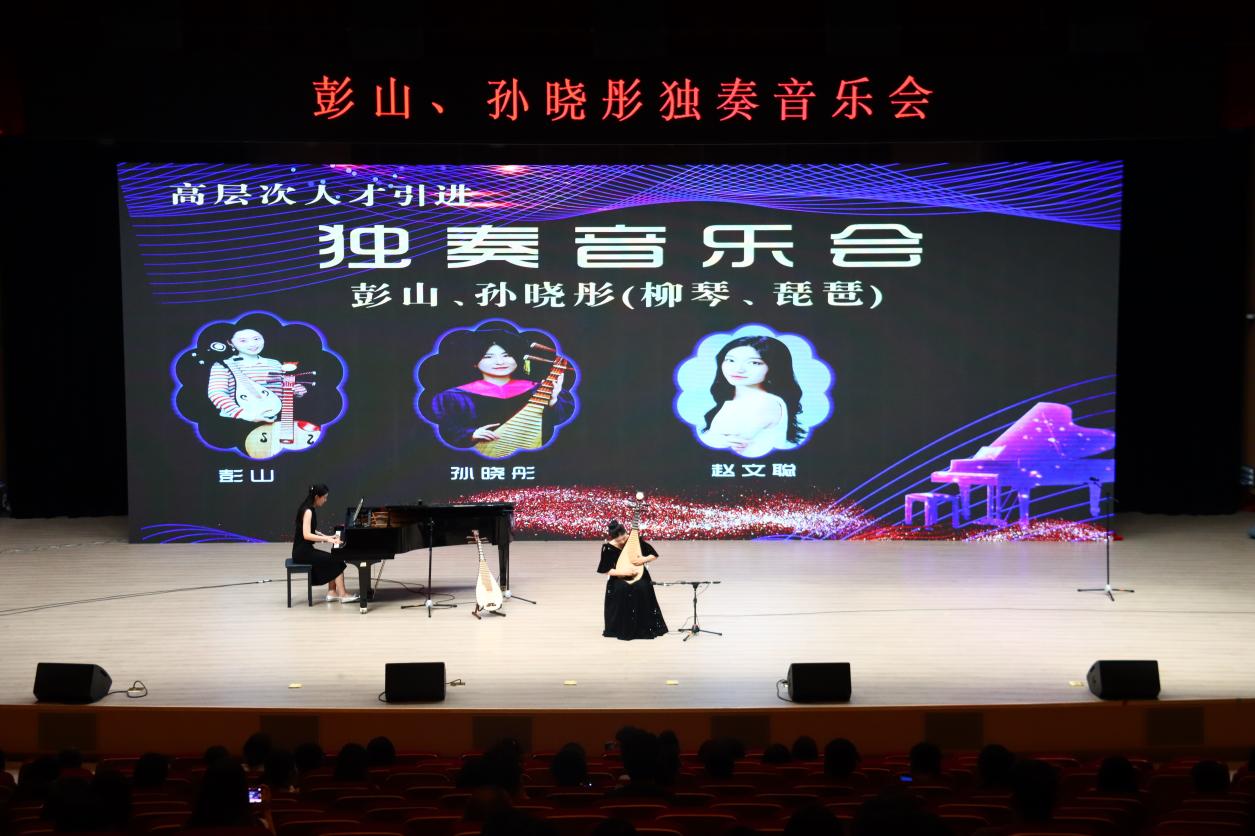 本次音乐会不仅展示了两位教师的卓越才华,也为广大师生和校内外音乐爱好者带来了一场视听盛宴。音乐会上,彭山老师和孙晓彤老师分别带来了经典弹拨乐作品《雨后庭院》、《江月琴声》、《花事》、《云想花想》、《花泣》。钢琴教师赵文聪担任钢琴伴奏,滕州市文化和旅游局耿海翔老师作为嘉宾助演。