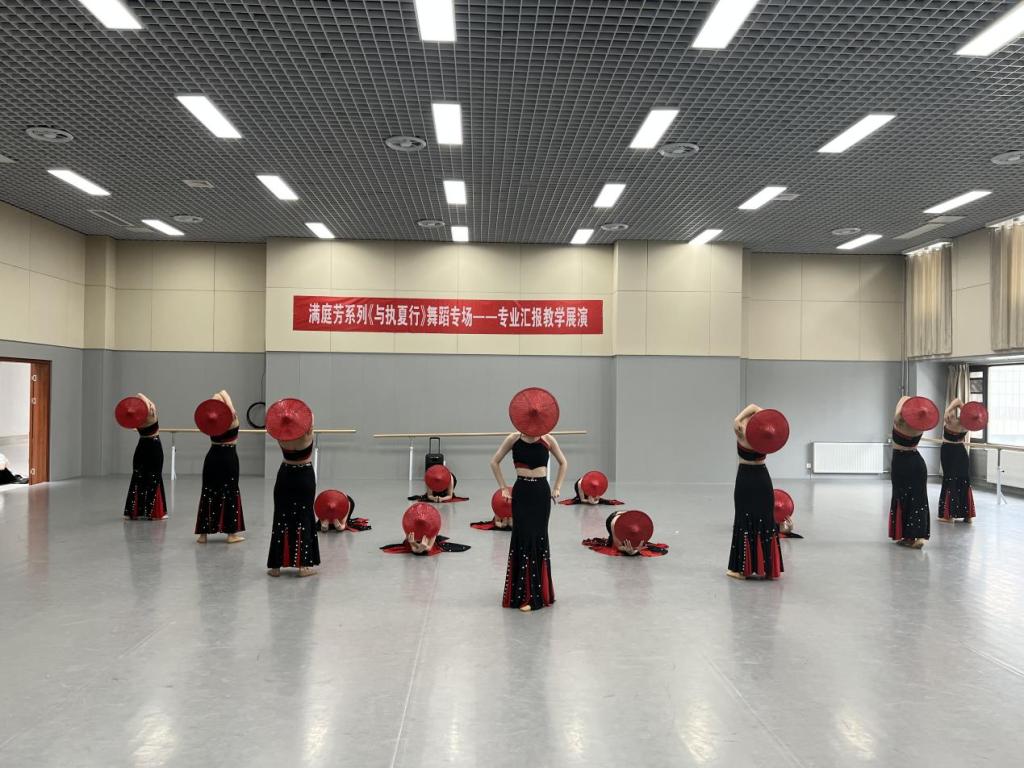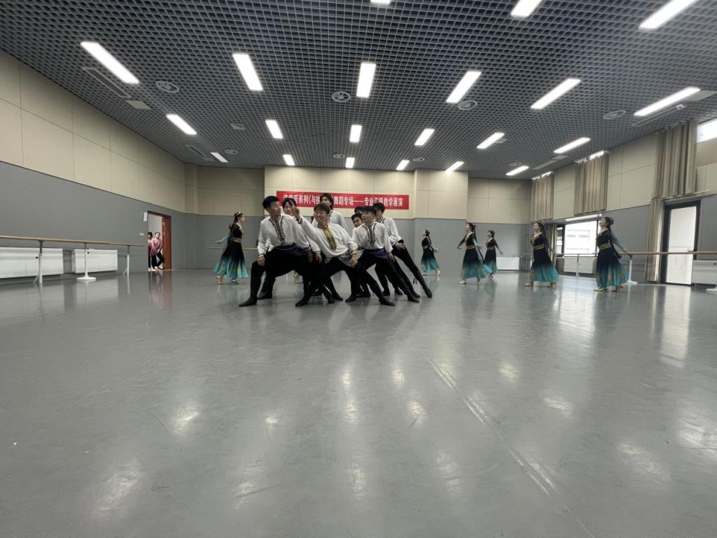 本次展演按照教学安排分为五个部分,分别是课堂成果展示、独舞、双三人舞、群舞以及技术技巧。课堂展示环节,学生们展示了课程中所学到的舞蹈技巧展现了古典与现代舞蹈的融合之美。傣族舞蹈剧目《山灵》体现了傣族舞蹈的婀娜多姿,维吾尔族剧目《掀起你的盖头来》展示的欢愉气氛更是把展演推向高潮。技术技巧展示环节中,学生们展示了单人群舞的精湛舞蹈技巧,展现出舞蹈艺术的魅力