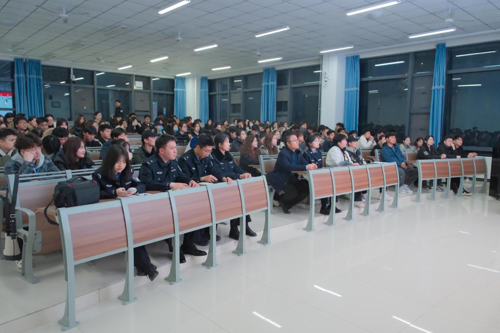 在反诈宣讲后,副书记褚衍彪以“校园安全,你我共筑”为题,为同学们进行校园安全教育宣讲。通报近期多地发生多起火灾事故,造成重大人员伤亡,令人十分痛心,教训极为深刻,他结合典型火灾事故案例,重点从消防安全方面讲解发生火灾时应急处置和紧急避险 、讲解消防器材使用方法及校园火灾预防措施,不断提高学生自身的安全防范能力。