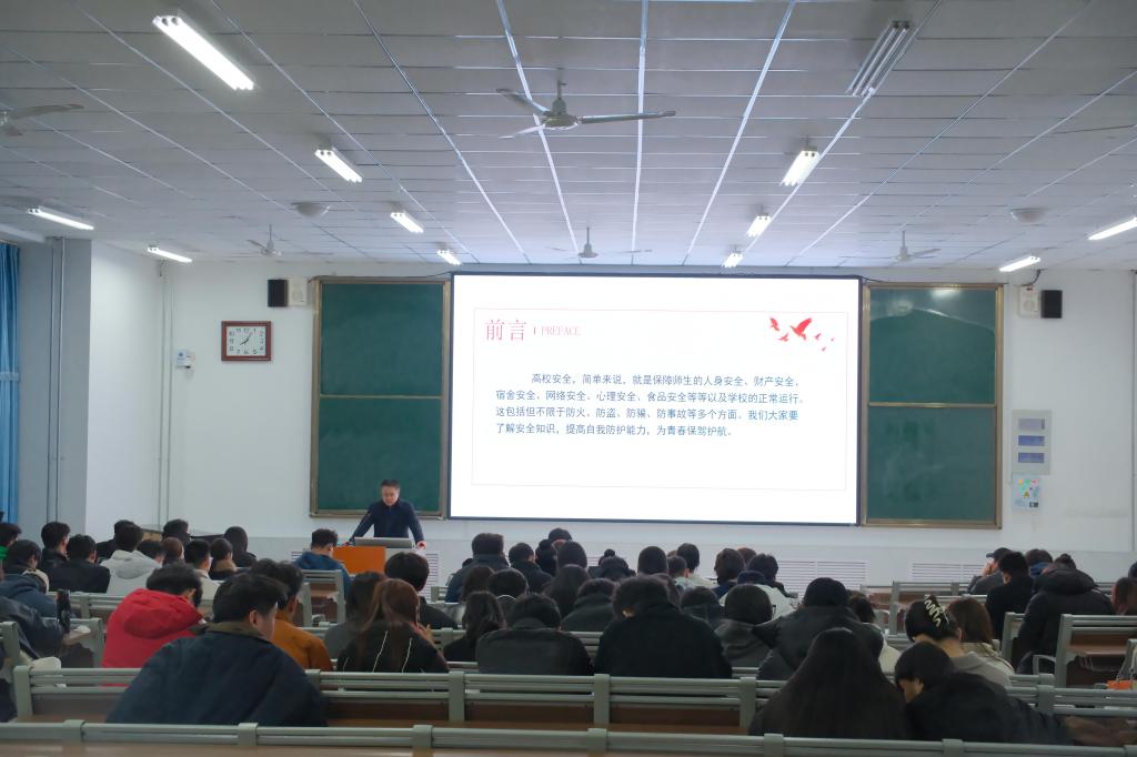 为了增强大学生的安全意识和自我保护能力,有效预防和减少校园安全事故的发生,3月7日晚,pg游戏电子模拟器联合校保卫处在增信楼112教室举办校园安全教育宣讲活动,pg游戏官网百余名学生干部参加,本次宣讲会由学院党总支副书记褚衍彪主持。
