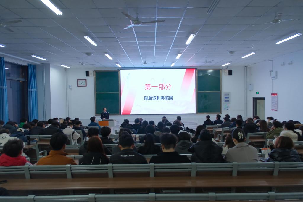 宣讲首先邀请薛城区公安分局反诈中心民警邵议萱、廖梓萌以“反诈防骗,青春同行”为题做反诈骗宣传,进一步加强大学生防诈骗意识,预防校园诈骗事件的发生,两位民警重点介绍了刷单类骗局、冒充身份类骗局、校园贷骗局以及两卡类骗局四类骗局。通过讲解,pg游戏官网学生深刻认识到诈骗行为的危害性,时刻提高警惕,加强防范意识,远离诈骗陷阱,保护好自身财产安全。