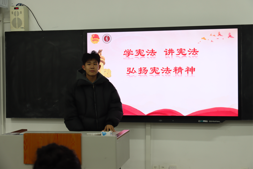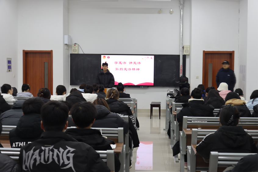 首先学生代表上台分享学宪法的心得体会,从生活中的真实案例出发,讲解了宪法的重要地位、核心内容以及与日常生活的紧密联系。接着通过播放动画宣传片的形式,将抽象的宪法条文转化为易于理解的生活常识,让同学们深刻认识到宪法作为国家根本大法,如何在维护社会公平正义、保障公民权益等方面发挥着至关重要的作用。在互动环节,同学们积极交流,就校园生活中涉及的法律问题等相互交流学习心得,现场气氛活跃,同学们表示将自觉在宪法和法律范围内活动,形成尊法、学法、守法、用法的良好氛围,为个人的成才进步筑牢法治根基。