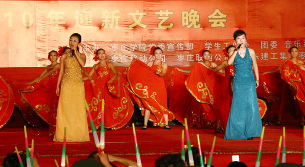 秋风送爽,硕果飘香。在喜迎中秋佳节和新中国61华诞的美好日子里,9月20日晚,校田径运动场流光溢彩,乐曲悠扬。新起点 新跨越——pg游戏电子模拟器2010年迎新文艺文艺晚会在这里隆重举行。校领导胡小林、高庆喜、李进京、颜世昌,枣庄移动公司总经理李中海、枣庄联通公司总经理宋庆斌出席晚会,与广大师生欢聚一起,共度良宵。