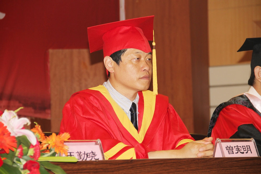 随后,在欢快的乐曲声中,身穿学士学位服的同学们依次按序上台行礼接受学位授予,身着校长导师服的曾宪明副院长为毕业生们拨正流苏并颁发了学位证书,并与他们合影留念,记录下这具有历史意义的一刻。