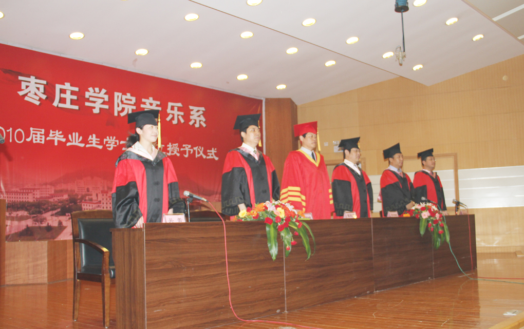 在庄严的国歌声中,音乐系2010届毕业生学士学位授予仪式正式开始。仪式上,系党总支副书记、副主任李永发表了热情洋溢的讲话,向被授予学士学位的同学们表示祝贺,并对毕业生提出了三点希望,一是继续努力奋斗,在新的岗位上建功立业。二是树立终身学习的理念,在新的人生征程中实现全新的跨越。三是永远心怀母校,与母校携手并肩共创辉煌。最后题诗《清平乐 欢送》一首献给全体毕业生,祝福同学们前程似锦、一路顺风!