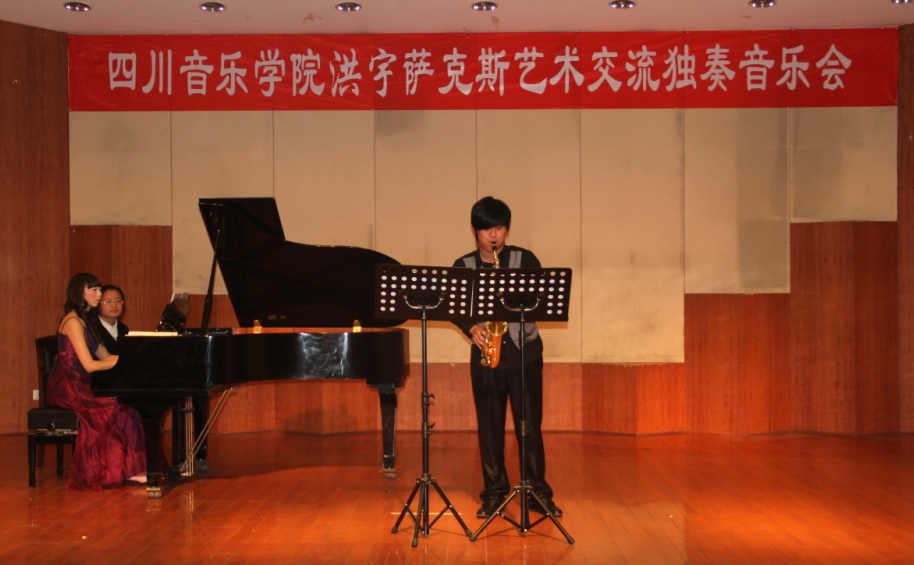 3月16日下午2:00,pg游戏电子模拟器举办“洪宇萨克斯管独奏音乐会”,pg游戏电子模拟器有关领导和学院部分师生观看了演出。