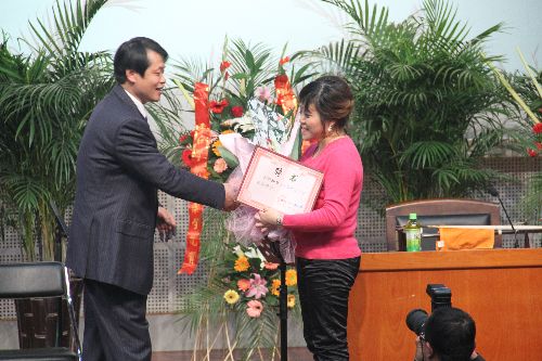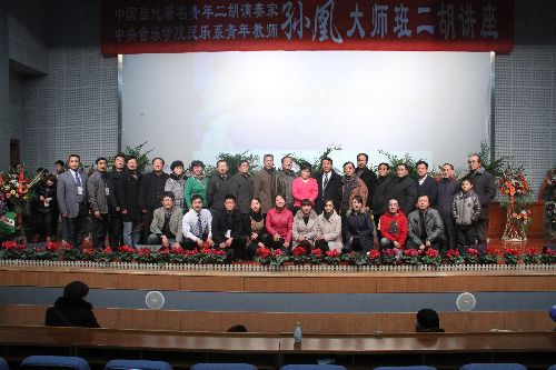 音乐会结束后,副校长曾宪明教授为孙凰老师颁发客座教授荣誉证书。孙凰随后为全场观众作了题为《如何提高二胡快速技巧及气息在二胡演奏中的运用》的专题讲座。