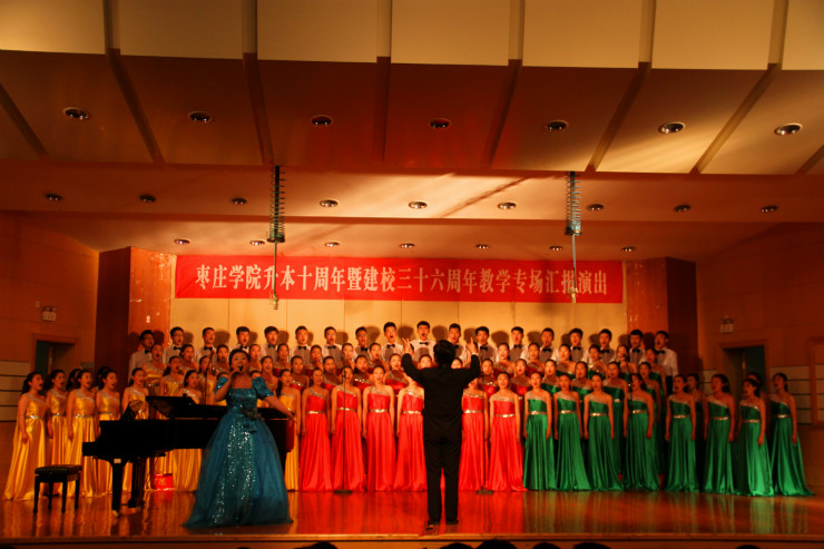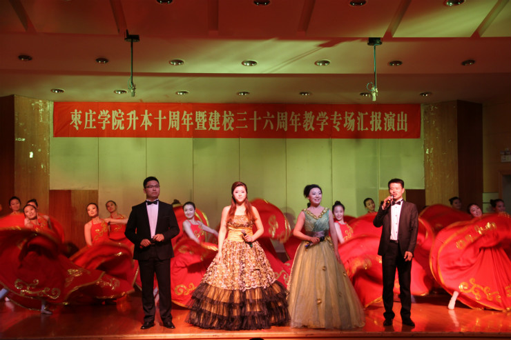 歌伴舞《节日欢歌》,将晚会推向了高潮,台下台上,观众与演员们一起放声高歌,唱出了对升本10周年、学校36华诞的深深祝福。