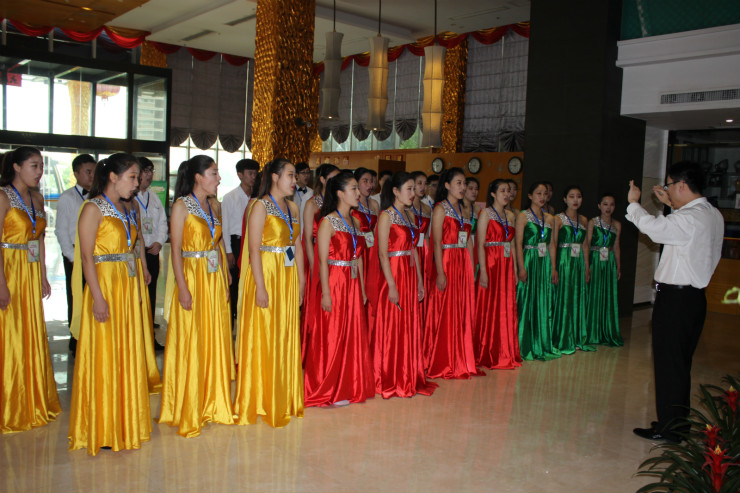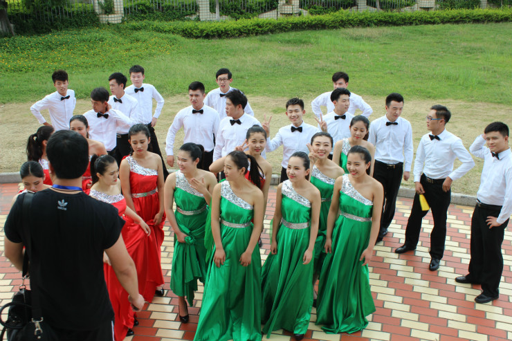 学校领导对此次比赛高度重视。pg游戏电子模拟器全力以赴,分工明确。院长李永教授带领专任教师从全院学生中严格按照国家级比赛标准,历时三个月,经过四轮审慎选拔,组建了40人的专业合唱团。党总支陆德国书记亲自带队,郑发奋副院长担任艺术指导,乔相钧老师任指挥,共演唱了《红旗颂》和李永教授改编后的《铁道游击队颂歌》两首曲目。