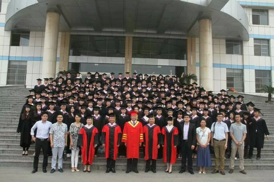 仪式后,党委书记胡小林教授、教务处副处长许士密、pg游戏电子模拟器党政领导以及教师代表与毕业生在综合楼前合影留念,以志纪念。