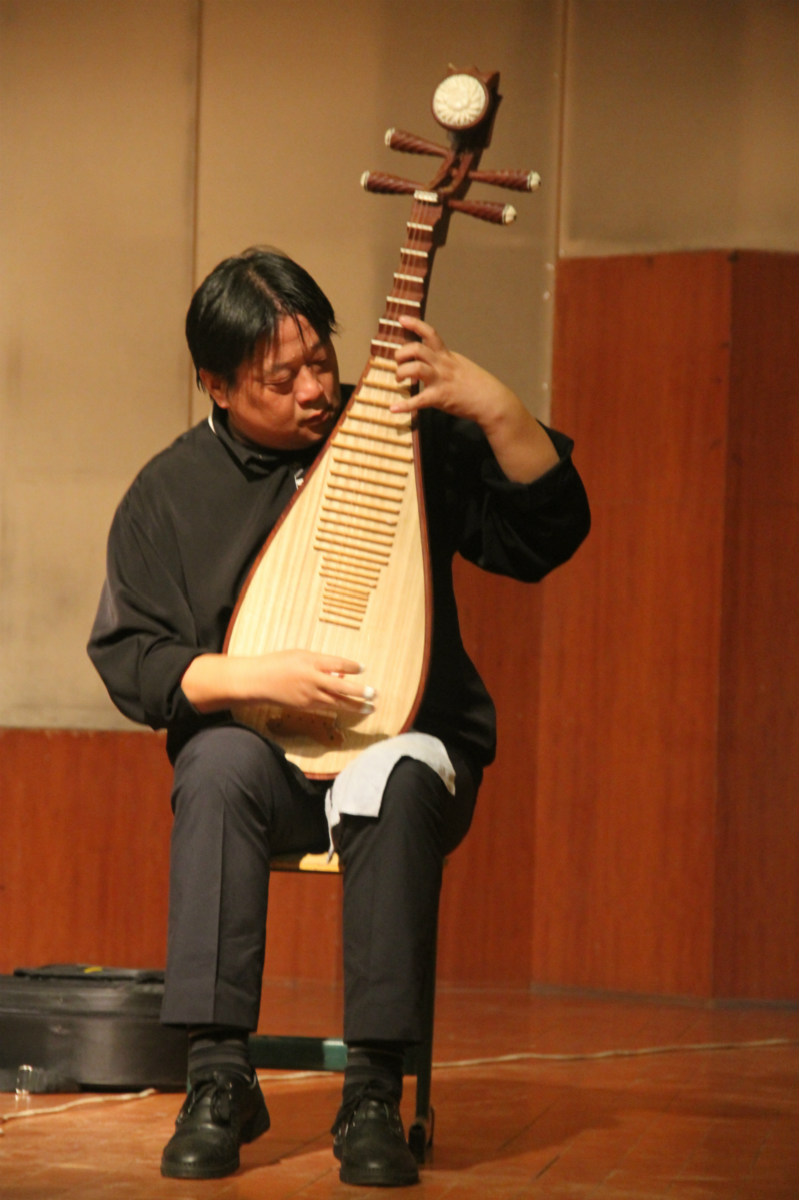 王晓东教授介绍了琵琶的基本知识和不同时期琵琶的发展情况,并演奏了沉闷悲壮的《霸王卸甲》,几线丝弦偏能奏出一片荡气回肠。特别是杨和平教授与王晓东教授在讲座中的一捧一逗,更是点燃了现场的气氛。期间,王晓东演奏了《春江花月夜》、《霸王卸甲》等作品,还演绎了自己改编的《送我一支玫瑰花》,最后,王晓东教授与pg游戏官网贾波老师共同合作演绎了作曲家久石让的《天空之城》,为本次讲座画上了完美的句点。