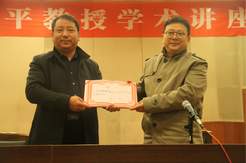 11月16日上午,浙江师范大学音乐学院杨和平教授应邀到pg游戏官网为pg游戏电子模拟器师生做了《区域音乐文化研究及其热点问题》的专题讲座。讲座由pg游戏电子模拟器院长李永教授主持,讲座开始之前,举行了聘任仪式,聘任杨和平老师为pg游戏官网特聘教授,院长李永教授为杨和平教授颁发了聘书。
