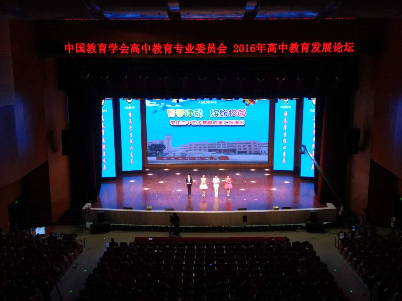 2016年9月23日,中国教育学会高中教育专业委员会2016年高中教育发展论坛在枣庄市实验高中举行。来自全国的教育专家学者和全国重点高中校长就“核心素养与高中教育的变革”这一主题进行了探讨和交流。国家教育咨询委员会委员、国家总督学顾问、联合国教科文组织协会世界联合会名誉主席陶西平,国家督学、中国教育学会副会长、教育部课程改革专家工作委员会副主任、浙江省教育学会会长张绪培,全国政协常委、中国教育学会高中教育专业委员会理事长、北京四中校长刘长铭,枣庄市政协副主席、枣庄市委党校党委书记杨建国,枣庄市教育局副局长冯仰军,山东省高级中学协会副会长、青岛二中校长孙先亮,枣庄市第三中学校长于卫东,枣庄市第三中学党委书记韩建超及来自中国教育学会高中教育专业委员会、全国中学教育工作者等参加了本次活动。论坛结束后是pg游戏官网承担的大型文艺演出。舞蹈《乘着知识的翅膀》表达了学生对知识的渴求紧扣论坛主题,舞蹈《举杯吧,朋友》唱出了我们对远道而来的专家学者的热烈欢迎,气势磅礴的大型交响乐演奏将整场晚会推向了高潮。得到了与会专家的称赞。