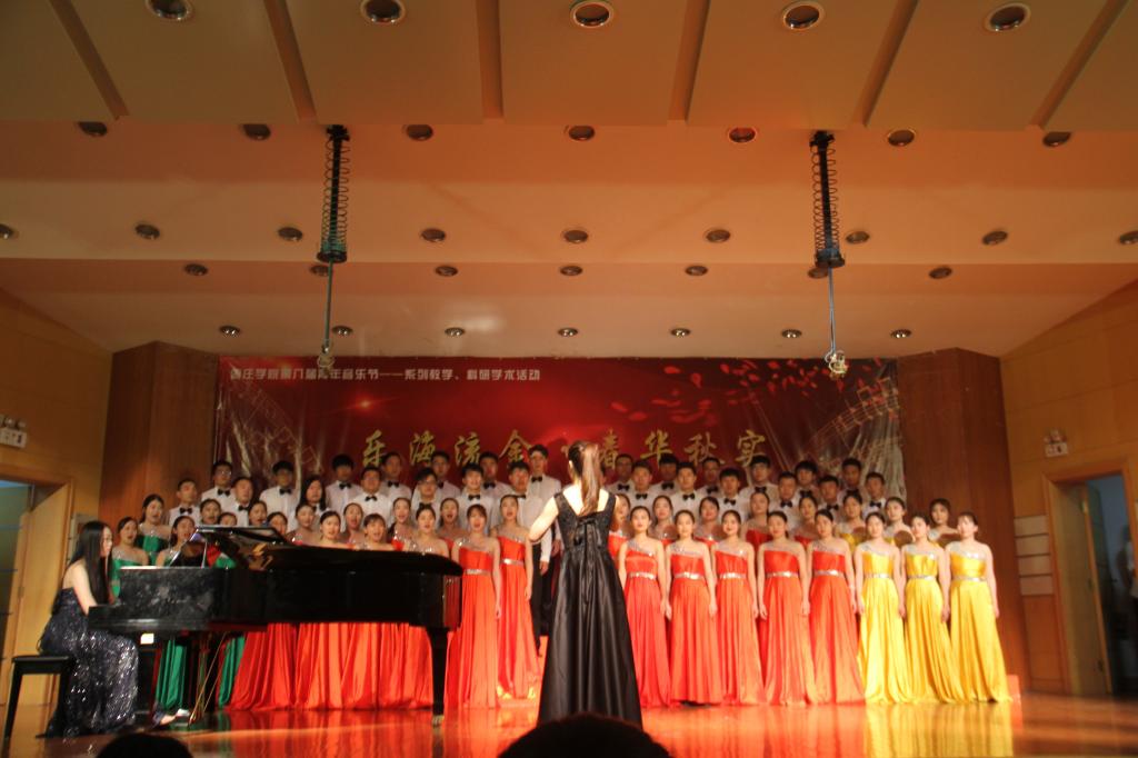 15点30分准时进行演出。播音戏剧团的诗朗诵《青春中国》,述说一个大写的中国,他们的声音铿锵有力,展现了当代青年积极向上的精神风貌,让我们在自豪里迸发无尽的激情。流行乐团的演唱《我爱你中国》让我们感受到祖国的万里山河,感受到祖国的魅力震撼,场下的喝彩声不绝于耳,大家的热情亦越烧越旺,场上场下完全融为一体,声浪、人浪融合,置身其中,将整场晚会推向高潮。合唱团的《菊花台》《大江东去》歌声优美,合唱整齐,同学们将观众带到了那回忆的时光。此次演出还增加了民族室内乐团和交响室内乐团;民族室内乐团《欢乐歌》在“山东省音乐家协会第四届青少年艺术展演”民乐组组合类一等奖,交响室内乐团《瑶族舞曲》的演奏使人有一种身临其境的感觉,欢快明亮。