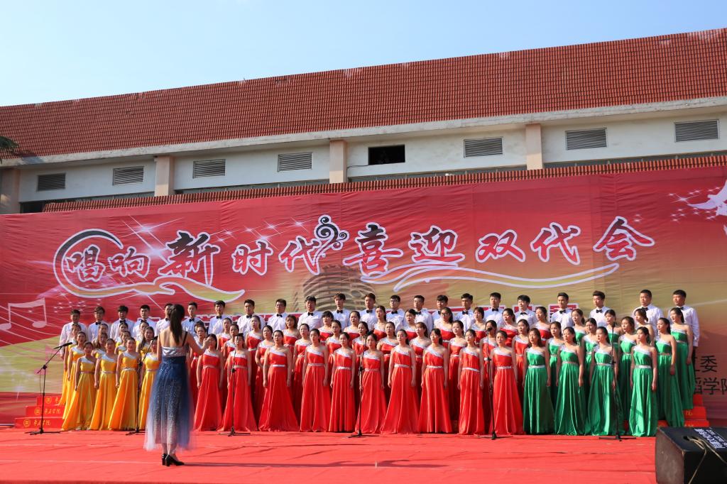 5月2日下午两点半,第四届“唱响新时代,喜迎双代会”合唱比赛决赛在五四小广场举行。校团委书记袁俊现、pg游戏电子模拟器党总支书记高原、校团委副书记谭胜兵、校团委副书记杨青运、校学生团委副书记王梦珊、齐浩楠出席此次比赛。校广播站李建华老师、音乐学院与舞蹈学院老师顾潇、杨云玉、惠芳老师、乔相钧、王升典、杜亚楠担任评委。各二级学院的师生代表到场观看。