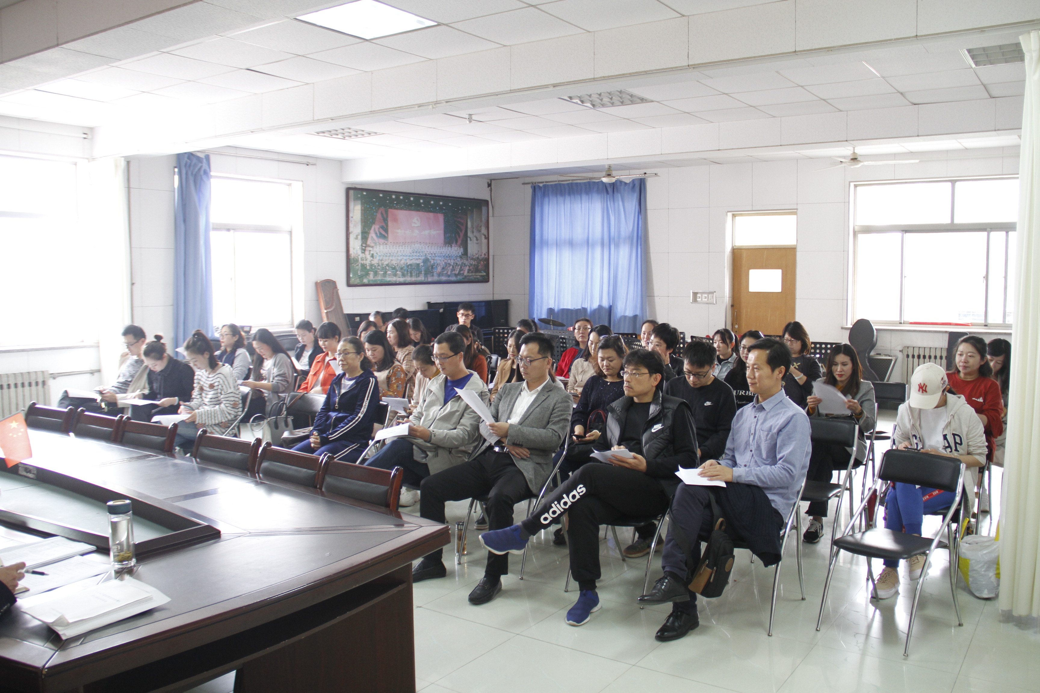 高原结合自身的学习感受和对初心解读,从“不忘初心、坚守初心、践行初心”三个方面,并结合审核评估工作中的成绩和不足,用讲理论,举实例,对做好音乐学院各项工作进行了全面的剖析阐述.他指出,作为学院一名共产党人,初心就是为师生谋幸福,为学院谋发展,全院师生都要铭记自己的初心,坚守初心,提高政治站位,牢记使命,团结奋斗。学院领导班子更要率先垂范,以身作则,带领全院师生践行初心,力争让音乐学院的各项工作再创辉煌。
