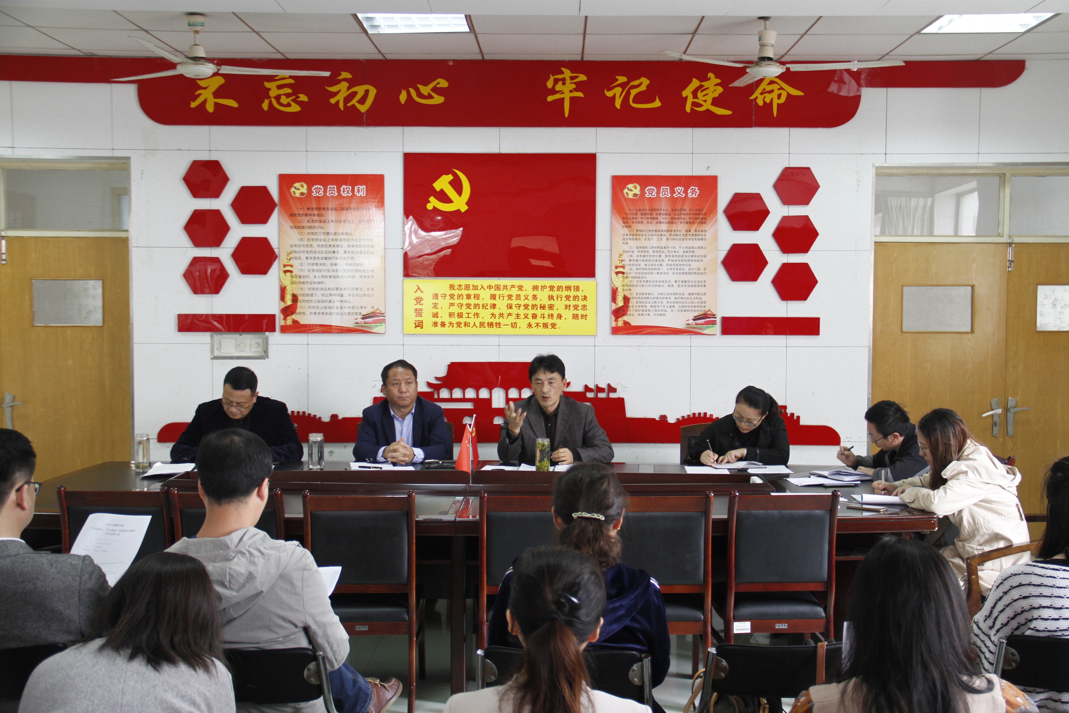 2019年10月23号下午,pg游戏官网在3002召开“不忘初心、牢记使命”党课,党总支书记高原以“初心如磐,不负使命”为题为全体教职工上了一堂生动的党课。院长李永主持此次大会。