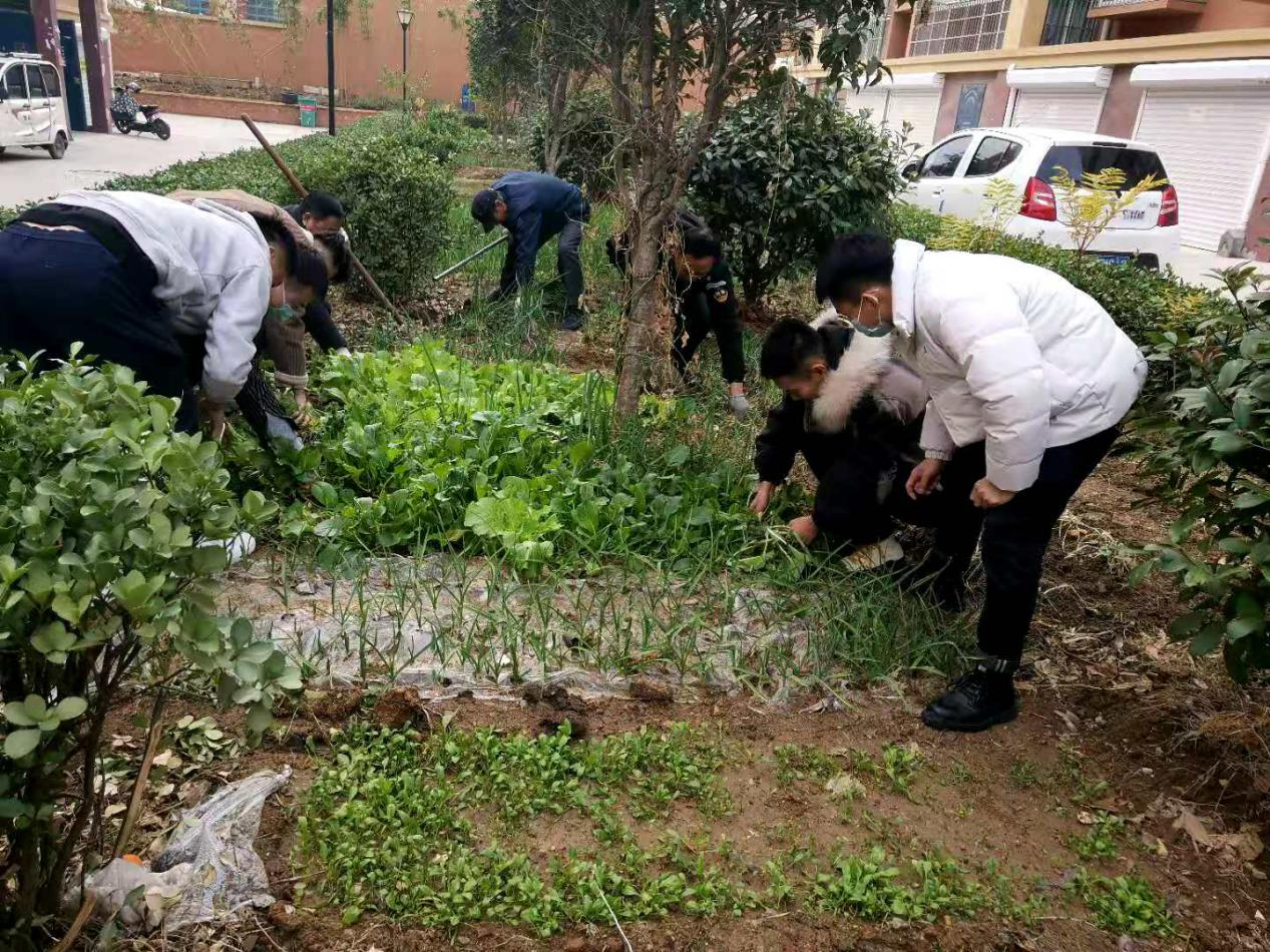 学生党员志愿者们发扬不怕苦、不怕脏、不怕累的精神,帮助社区进行卫生打扫,清除社区广场杂草、落叶、清扫楼道,帮助居民除草拔菜,为社区居民营造了良好的居住环境。