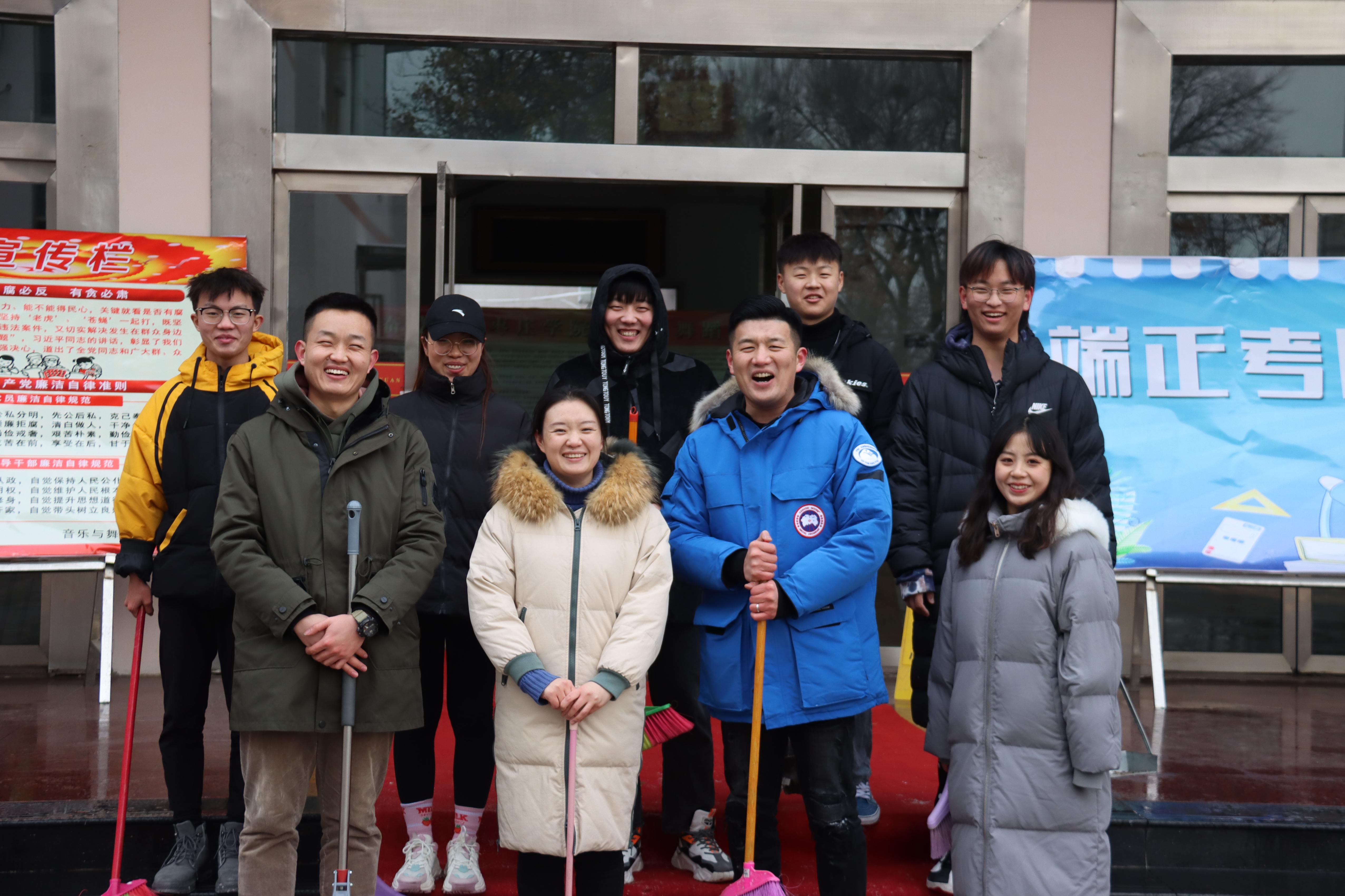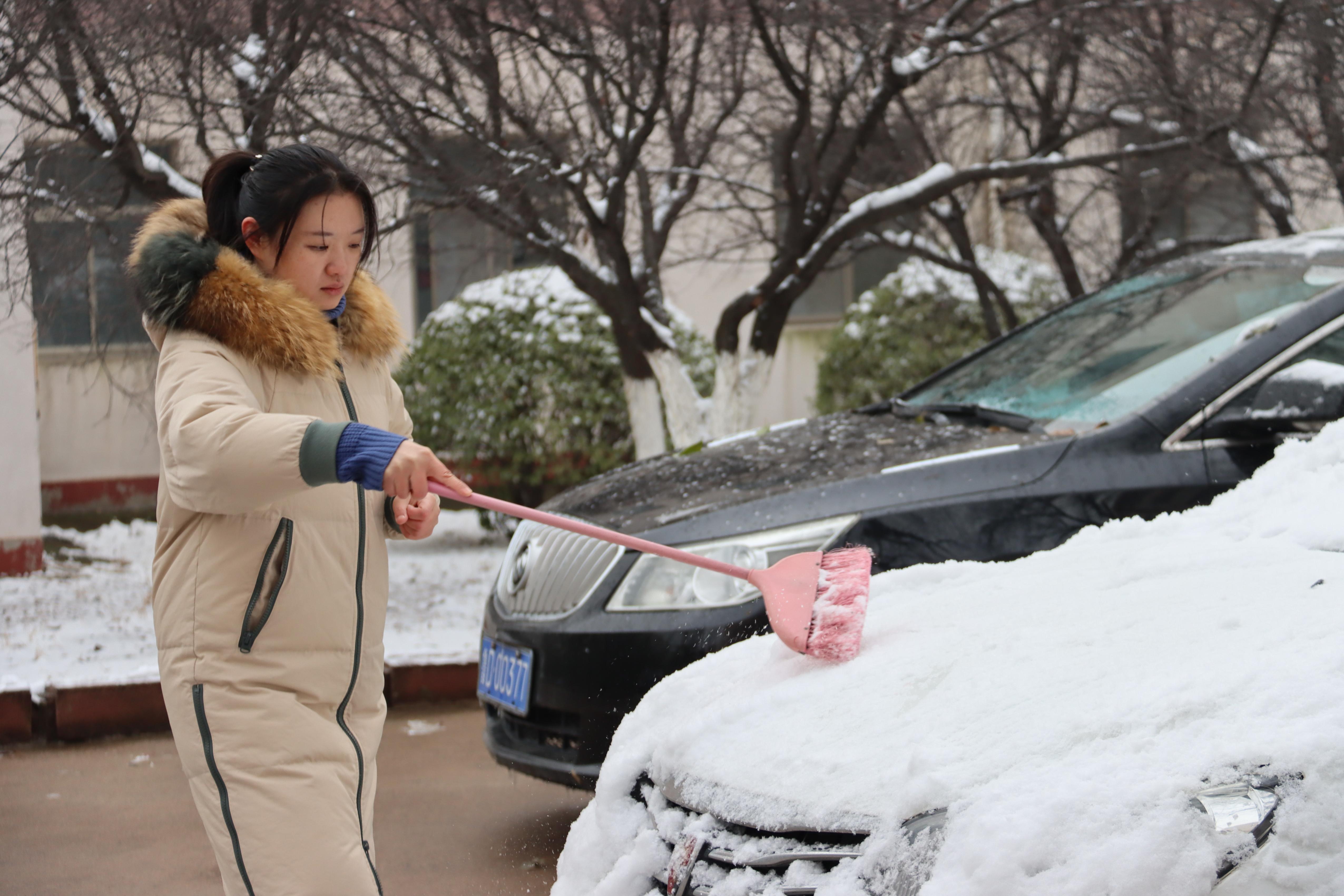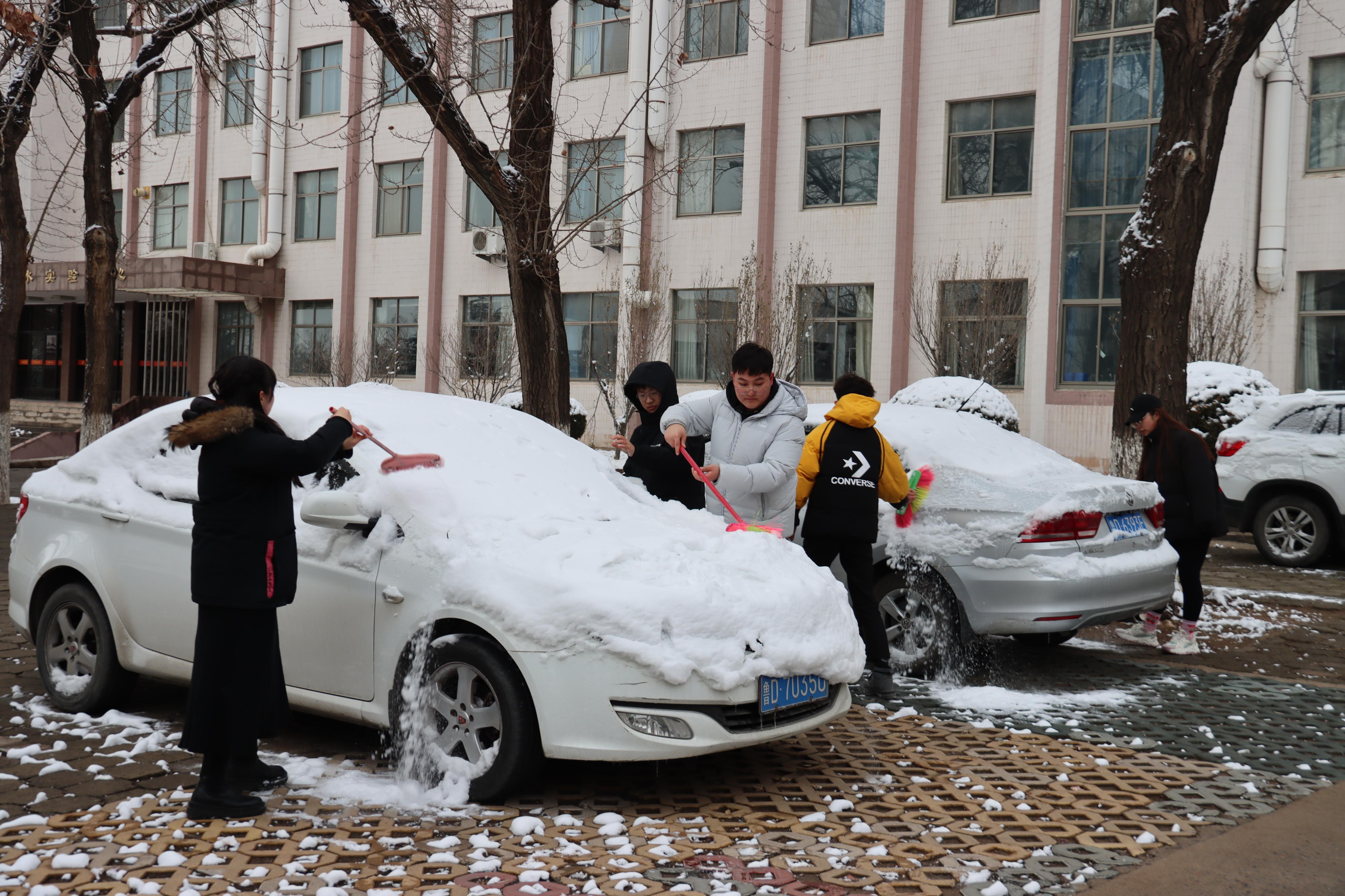 同学们拿起拖把、扫帚等工具,在综合楼、行政楼、停车场等区域为老师们的车辆清雪,不畏严寒,相互配合,虽然室外温度很低,但大家义务劳动的热情和团结的力量让这个冬日变得格外温暖。