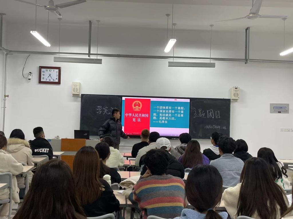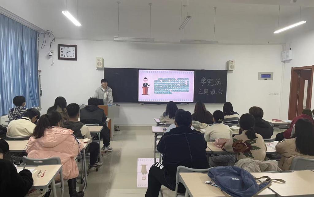 2021年11月2日,pg游戏电子模拟器为普及宪法知识、增强学生法律意识、提高学习法律知识的积极性,以班级为单位开展了“学宪法”主题班会活动。
