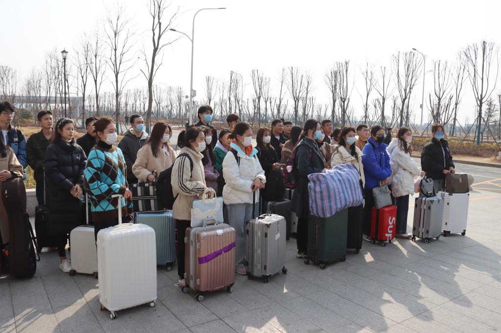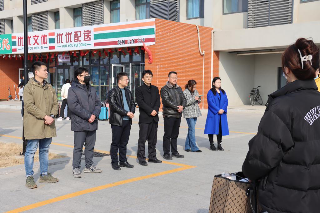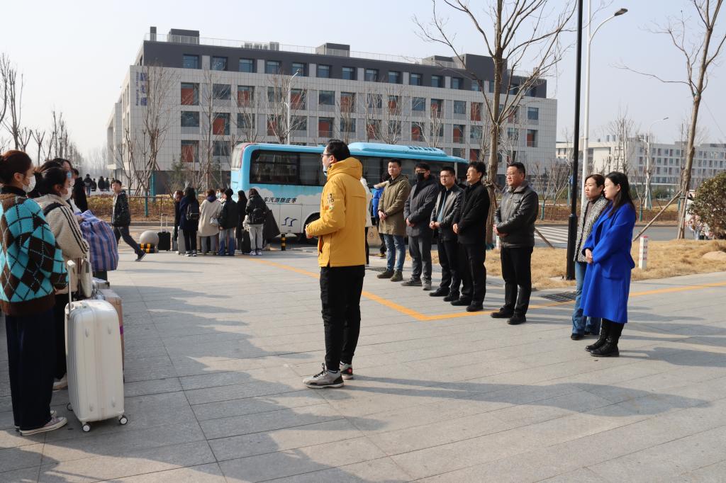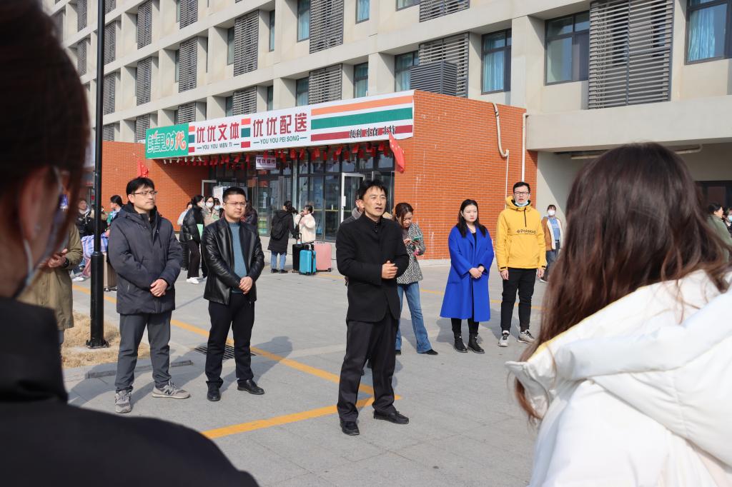 3月1日上午,在新校区市内支教乘车点,pg游戏电子模拟器党政领导及辅导员班主任欢送市内支教学生。