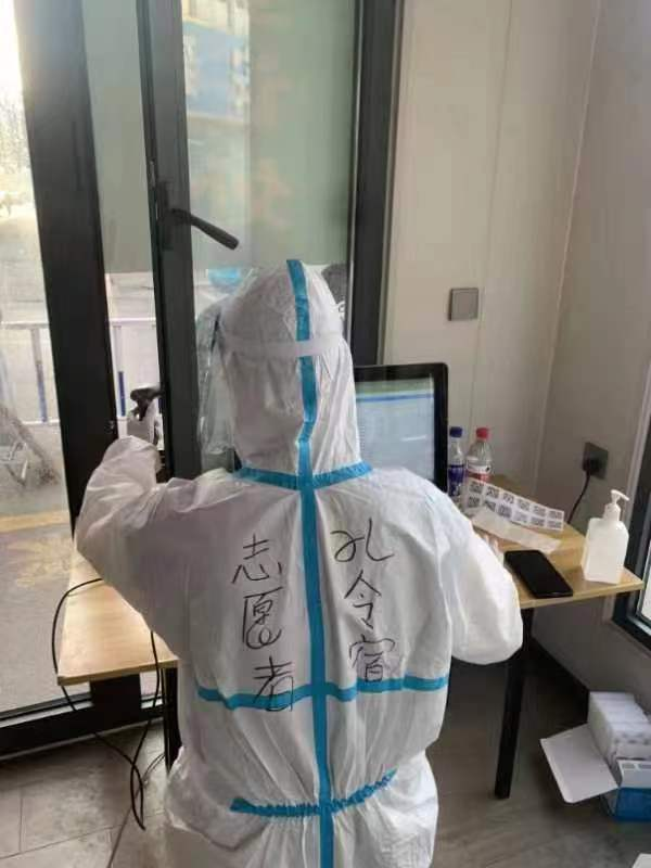 孔令宿同学表示,“这场防疫志愿者的经历让我切实体会到了防疫工作者的艰辛和防疫事业的艰巨,在穿上那身防护服之时真正感受到了当代青年人的责任感和自豪感,作为青年一代我们应用臂膀扛起如山的责任,用青春和汗水创造新的奇迹,为社会主义祖国的现代化建设添砖加瓦,贡献自己的力量!”