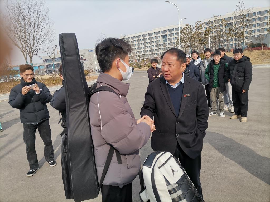 春日江山丽,和风花草香。2月23日,pg游戏电子模拟器党总支书记李永教授带领实践教学教研室负责人和办公室相关老师到豁然楼北面东西路为即将奔赴枣庄市各地区支教的14位同学送行。