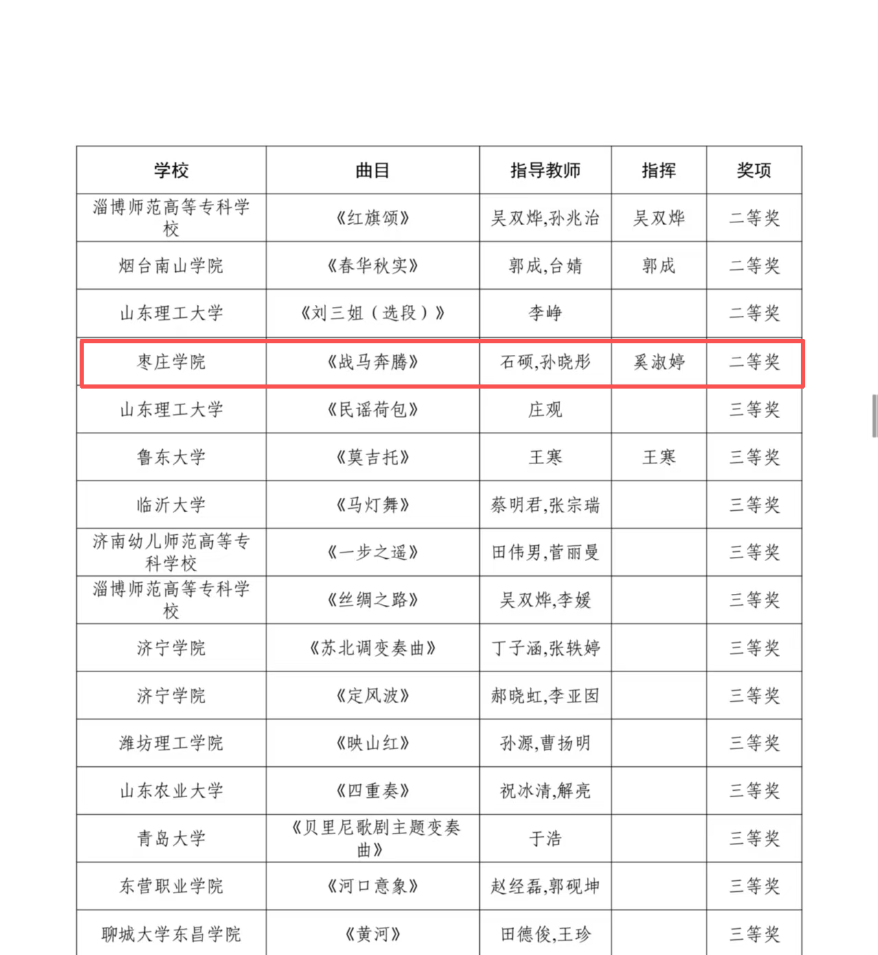 2025年11月18日,山东省教育厅公布2025年山东省大学生校园艺术节器乐舞蹈专项展示活动获奖名单,pg游戏官网选送的3个节目全部获奖,共斩获2项二等奖、1项三等奖。其中器乐乙组《龙腾虎跃》《战马奔腾》双获二等奖,舞蹈乙组《榴韵·灼华》获三等奖,充分展现了pg游戏官网在艺术教育领域的扎实功底与创新实力。