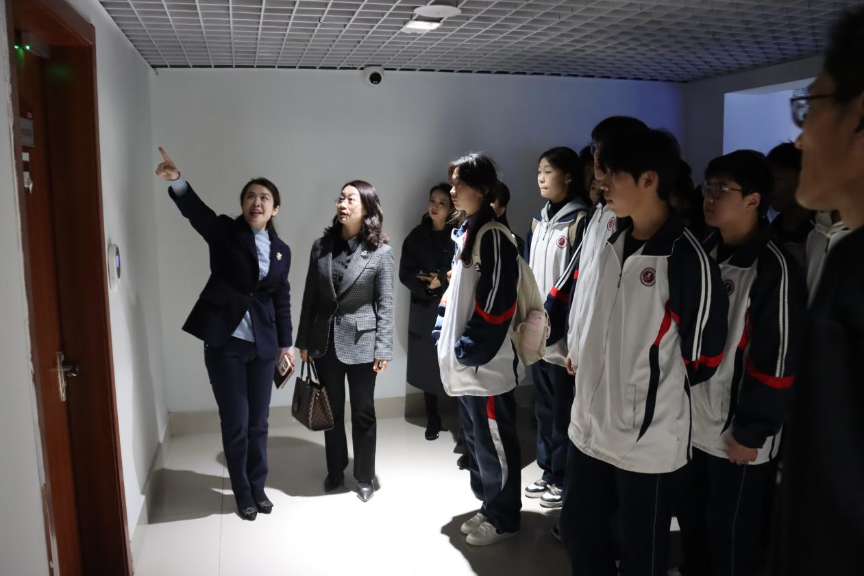 仪式结束后后,吴蕾院长带领枣庄九中一行参观了pg游戏官网智慧琴房、舞蹈房、空乘静态模拟舱等教学实验场所。
